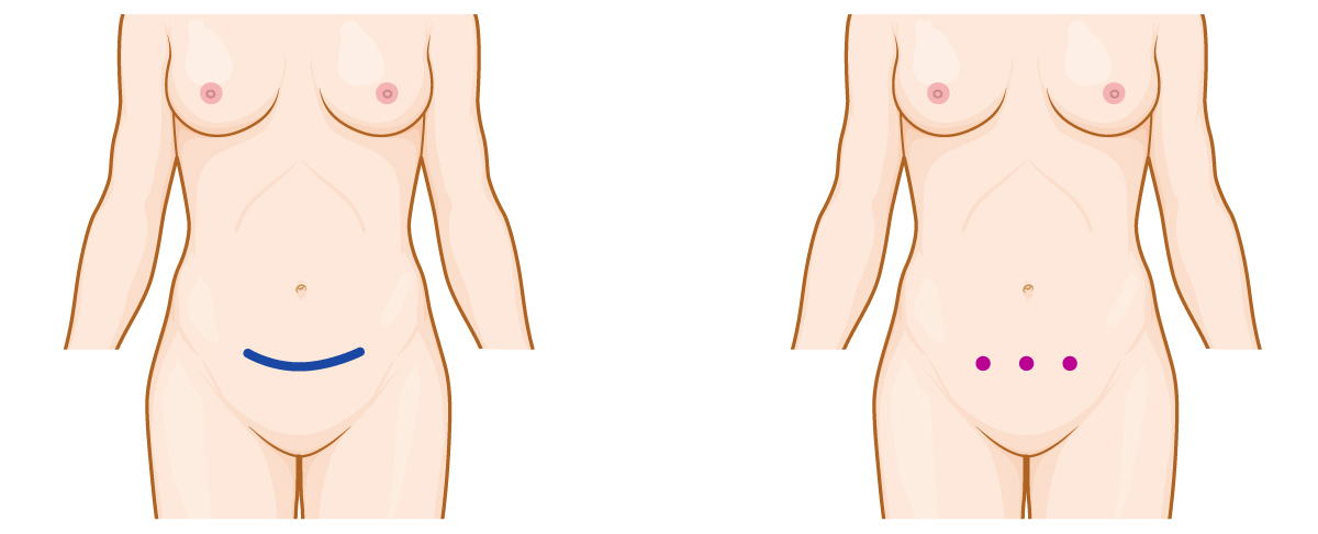 | Incision horizontally or vertically to the navel with an incision of 10 cm or more | Surgery via minimal hole through the navel |