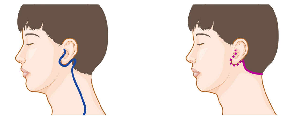 | Long incision along ear and neck | Minimal incision behind the ear |
