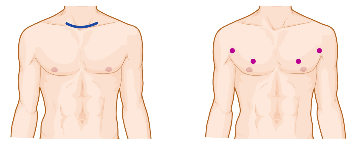| Transverse skin incision at front of the neck | Surgery with minimum size holes |