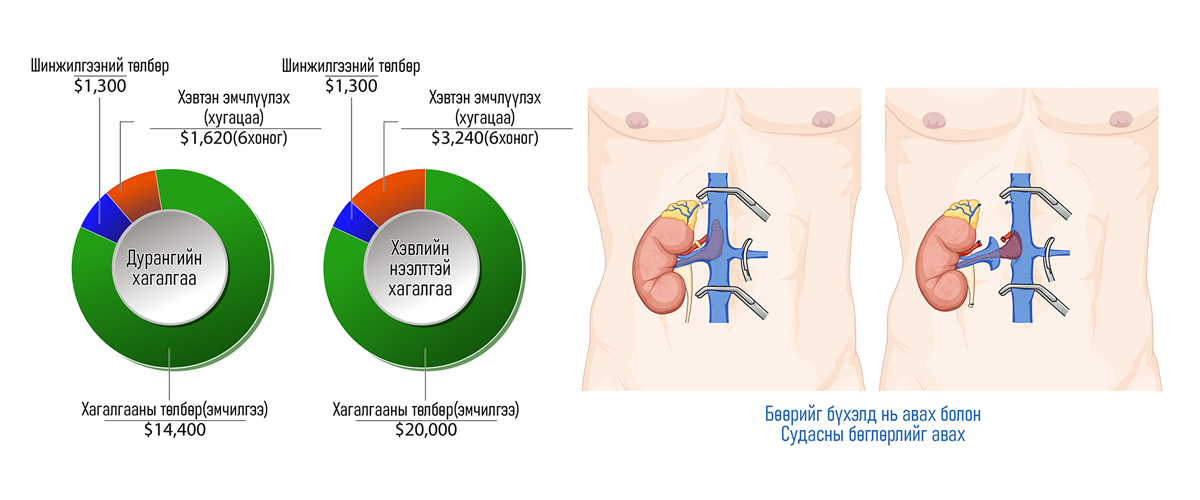 Бөөрөнд хавдар бий болсон тохиолдолд дурангийн болон нээлттэй мэс засал хийж хавдарыг авах болон өвчилсөн бөөрийг авах мэс засал хийдэг.