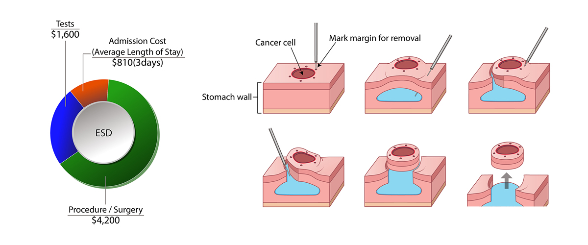 早期癌症、腺瘤、小粘膜下肿瘤等,通过内窥镜粘膜切开及剥离粘膜下层