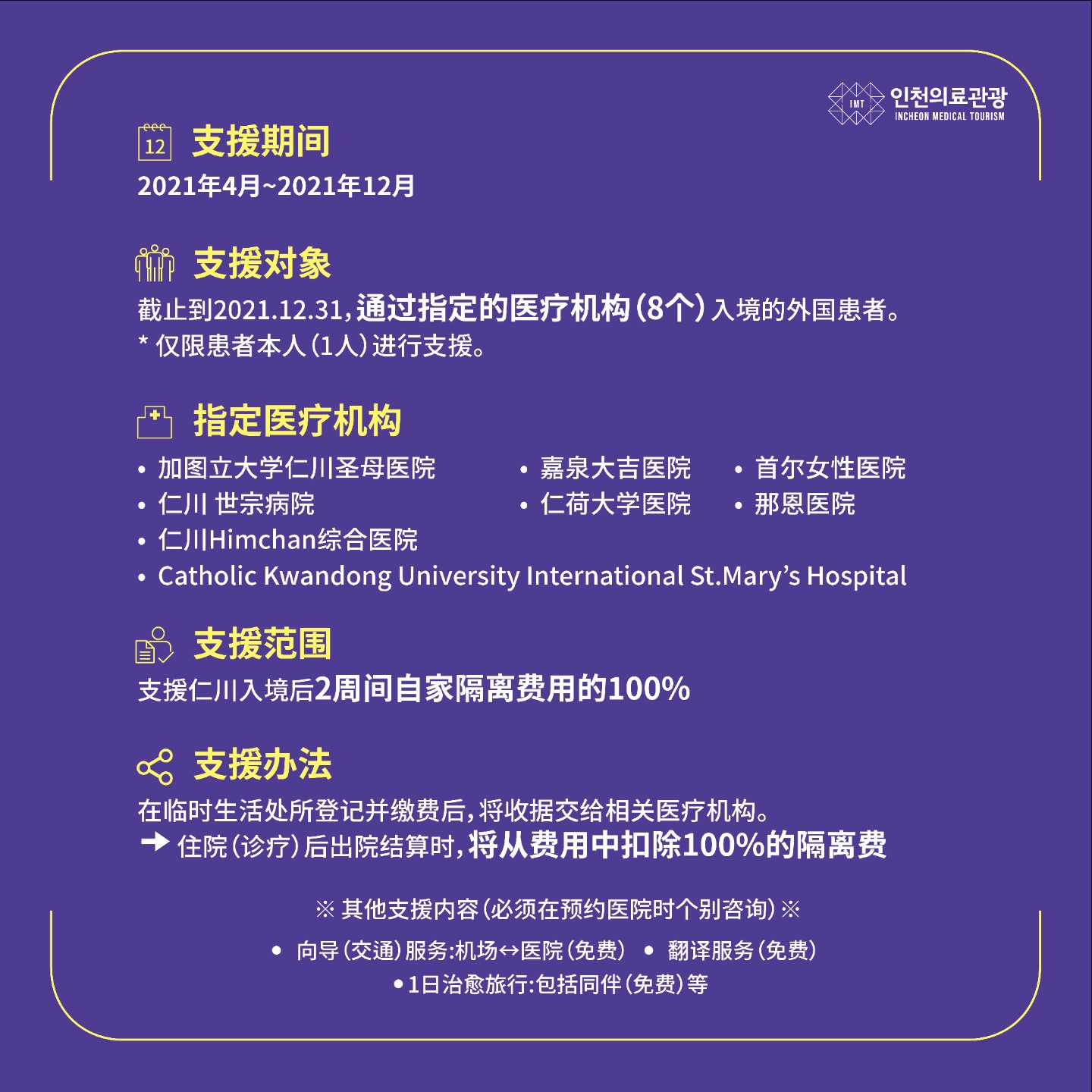 • 针对到医院治疗的重症患者提供100%自家隔离费用